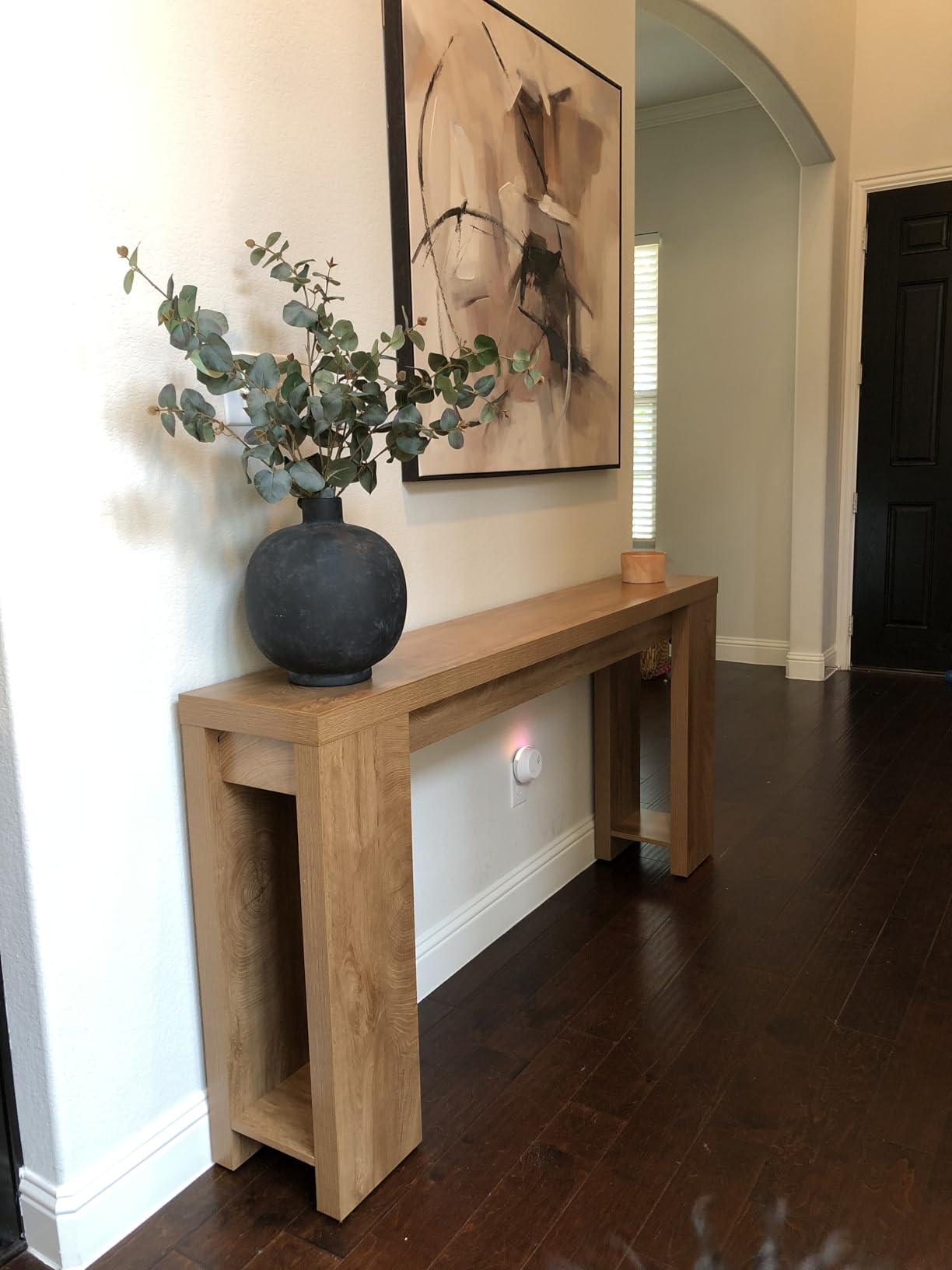 Компактен и долг дизајн: Со ширина од 160 cm и длабочина од 30 cm, овој конзолен стол нуди доволно простор за вашите омилени декорации, фотографии, вазни и слично. Неговиот тесен дизајн го прави погоден за секоја просторија без да зафаќа премногу простор.