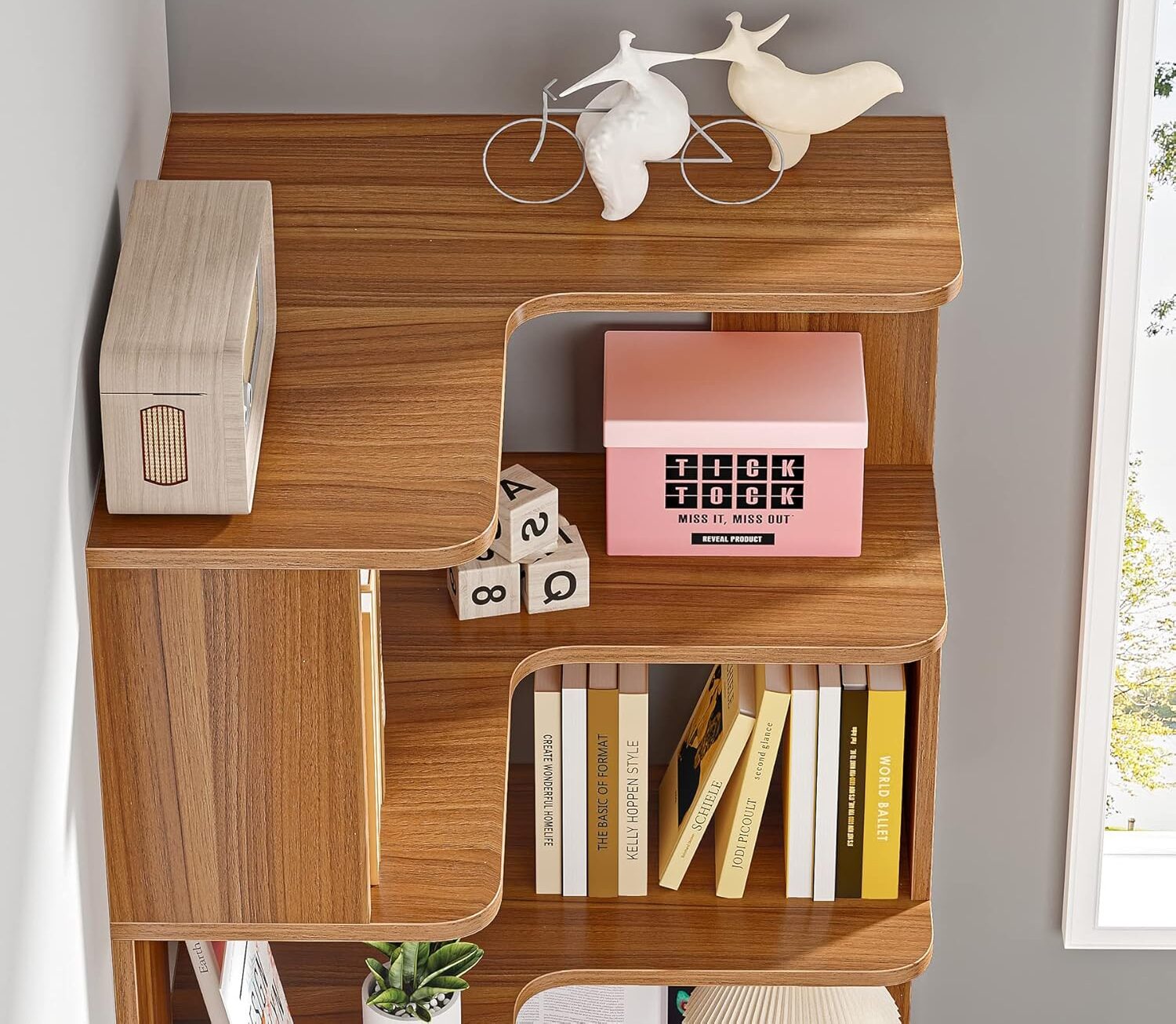 Индустриски и мултифункционален дизајн: Прав агол од 90° и индустриски дрвен дезен создаваат модерен минималистички стил. Располага со 6 нивоа за складирање на книги, фотографии, декорации и други предмети.