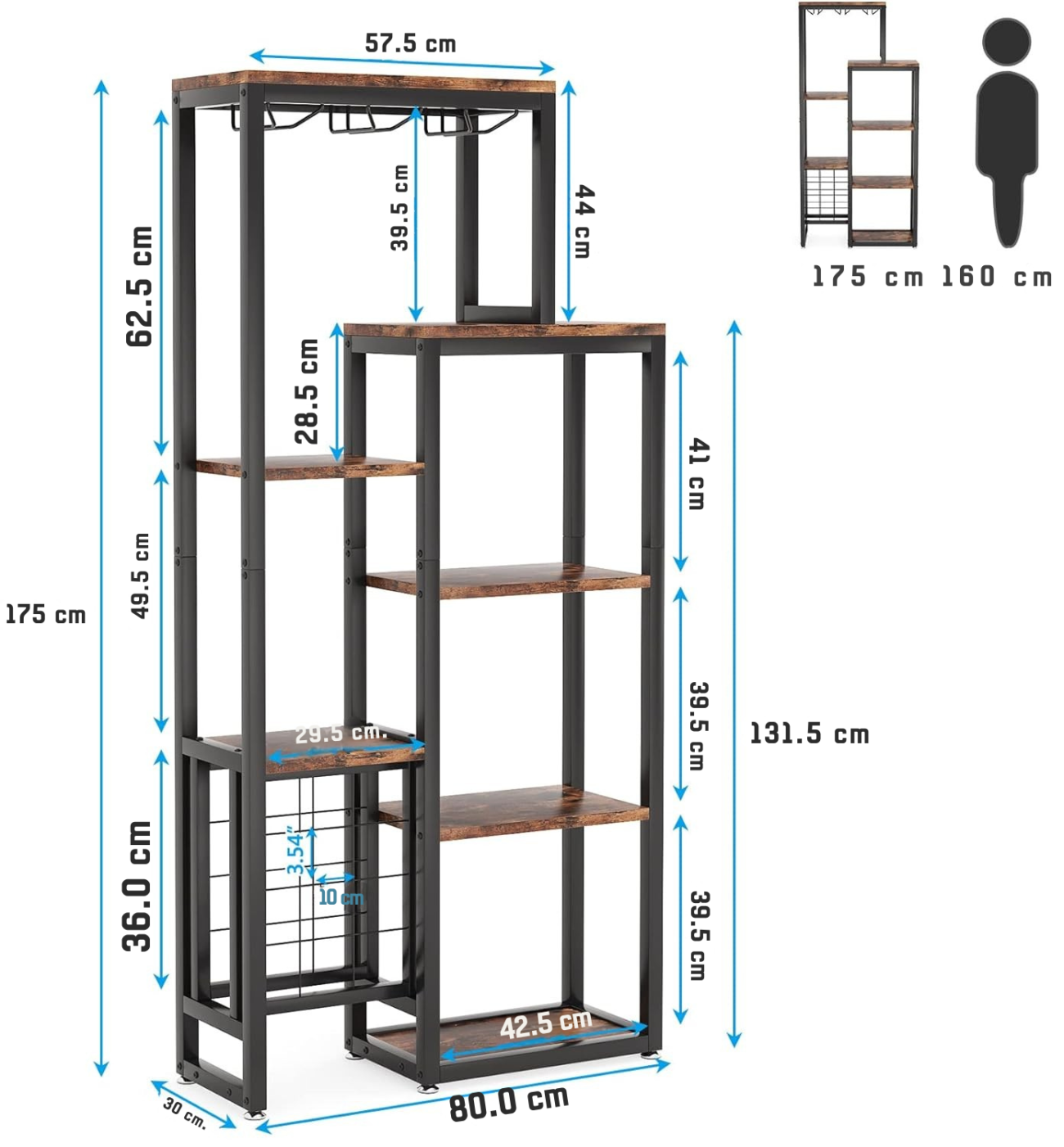Додај елеганција и организација во твојот дом со Château Noir стоечкиот вински рафт. Со индустриски стил и рустикален дрвен финиш, овој 5-нивен организатор е идеален избор за кујна, трпезарија, дневна соба или домашен бар.