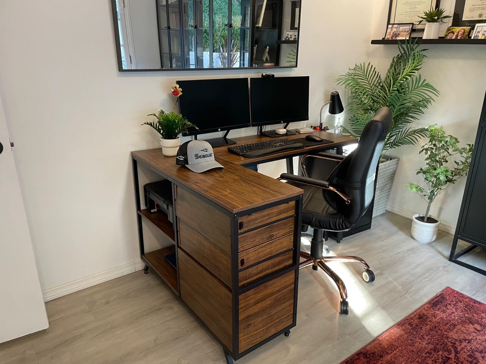 Ова аголно CornerMaster биро за компјутер од MebeLux е создадено за оние што сакаат удобност, функционалност и модерен индустриски стил во својата канцеларија или работен простор. Дизајнот максимално го користи аголот на просторијата и овозможува организирана, уредна и пространа работна површина.