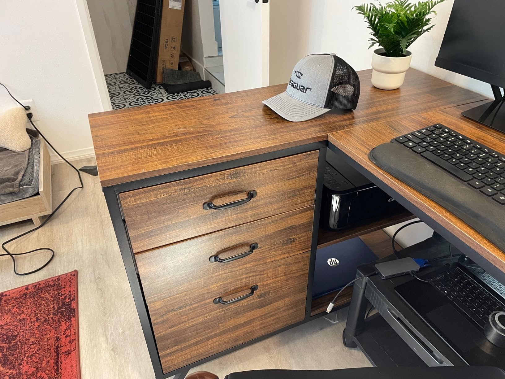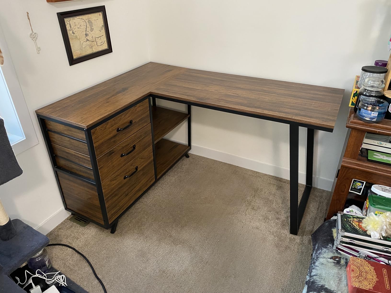 Реверзибилен L-дизајн – може да се постави лево или десно, во зависност како ви одговара, што го прави идеално аголно биро за компјутер.