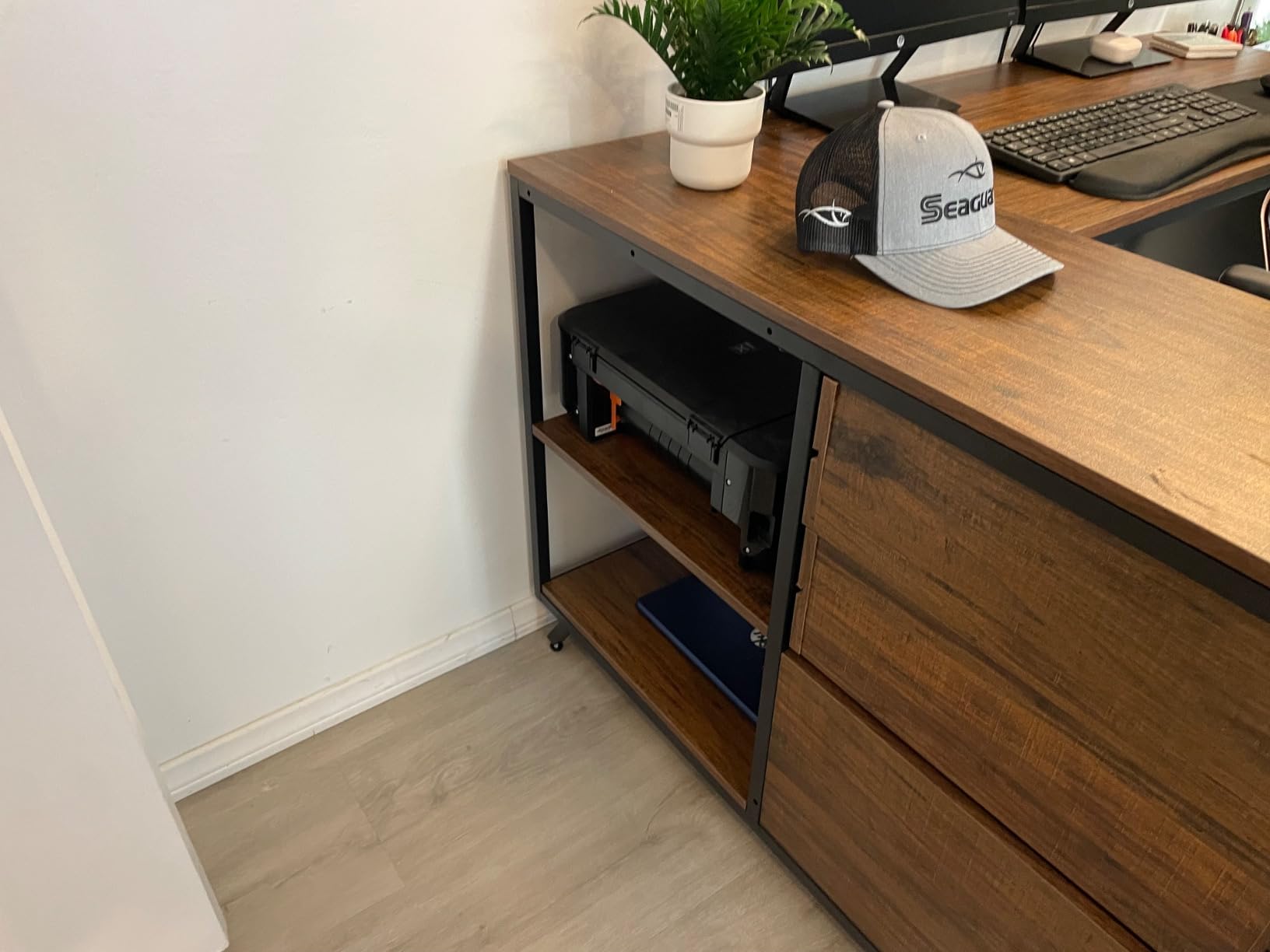 Практично складирање – вклучува три фиоки (две помали и една поголема за А4 документи) и две отворени полици за сите ваши канцелариски материјали, секогаш на дофат.