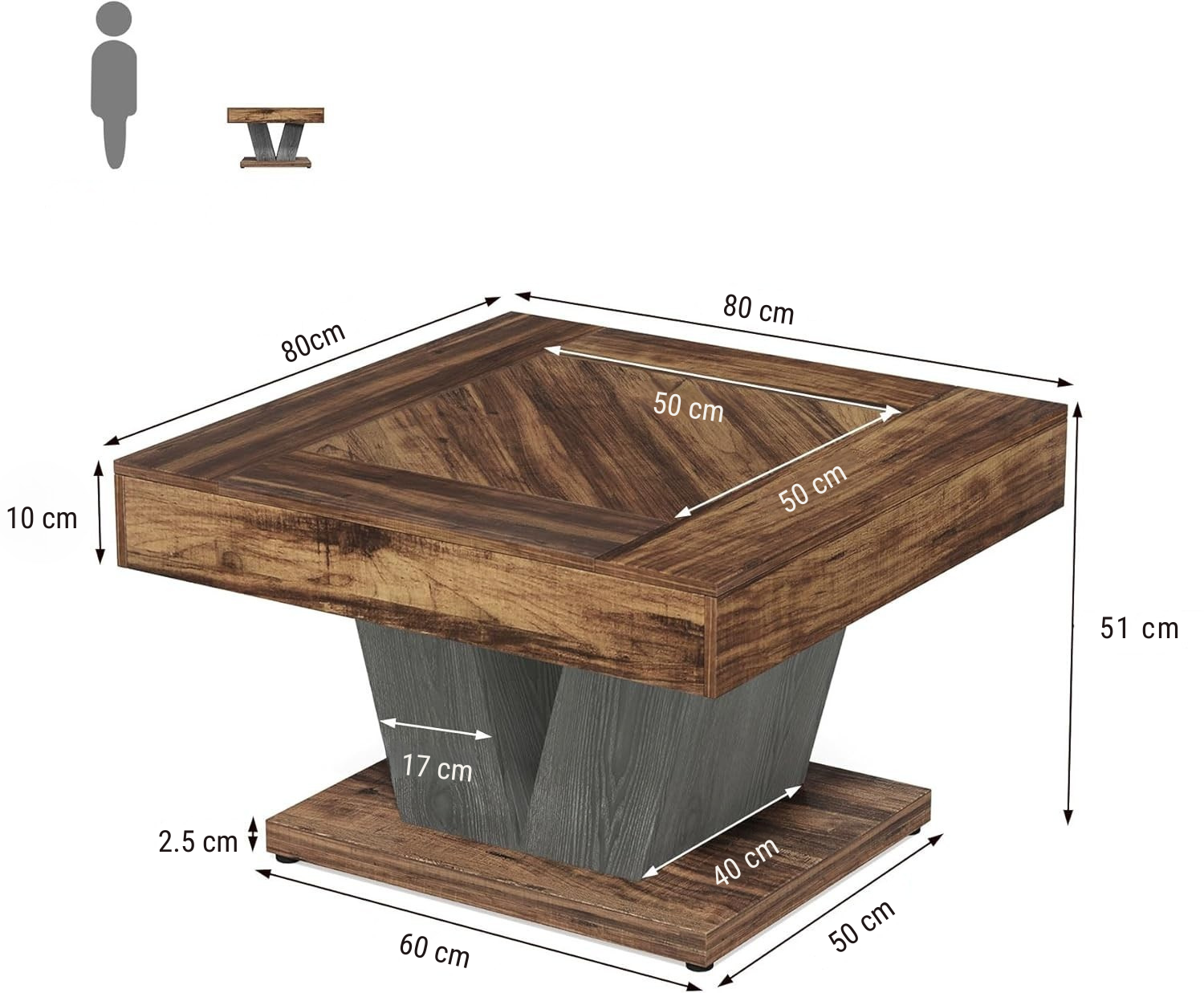 Квадратната маса за дневна соба доаѓа со сите потребни делови и алатки, како и јасни инструкции за монтажа кои го прават поставувањето едноставно.