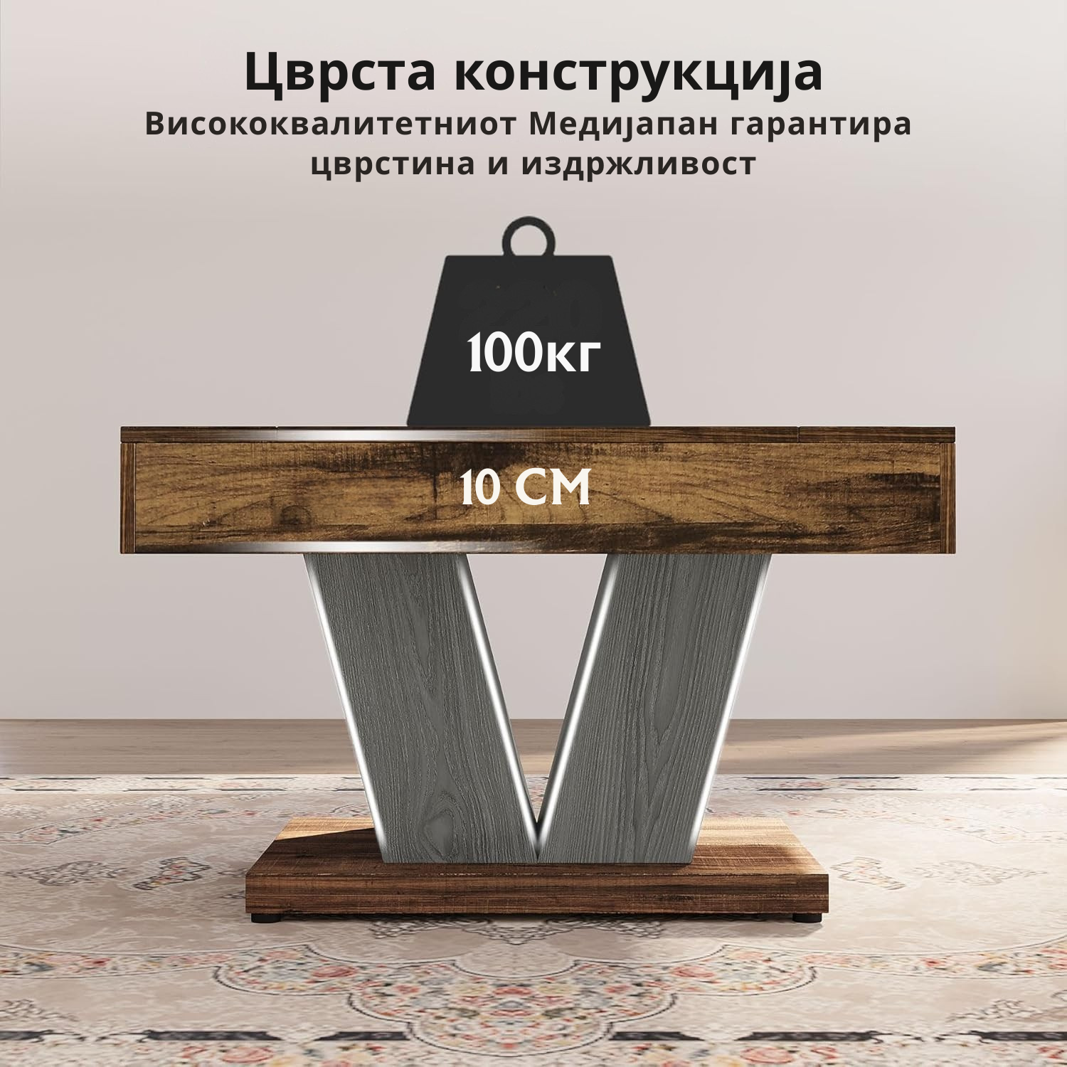 Цврста конструкција Висококвалитетниот МДФ гарантира цврстина и издржливост