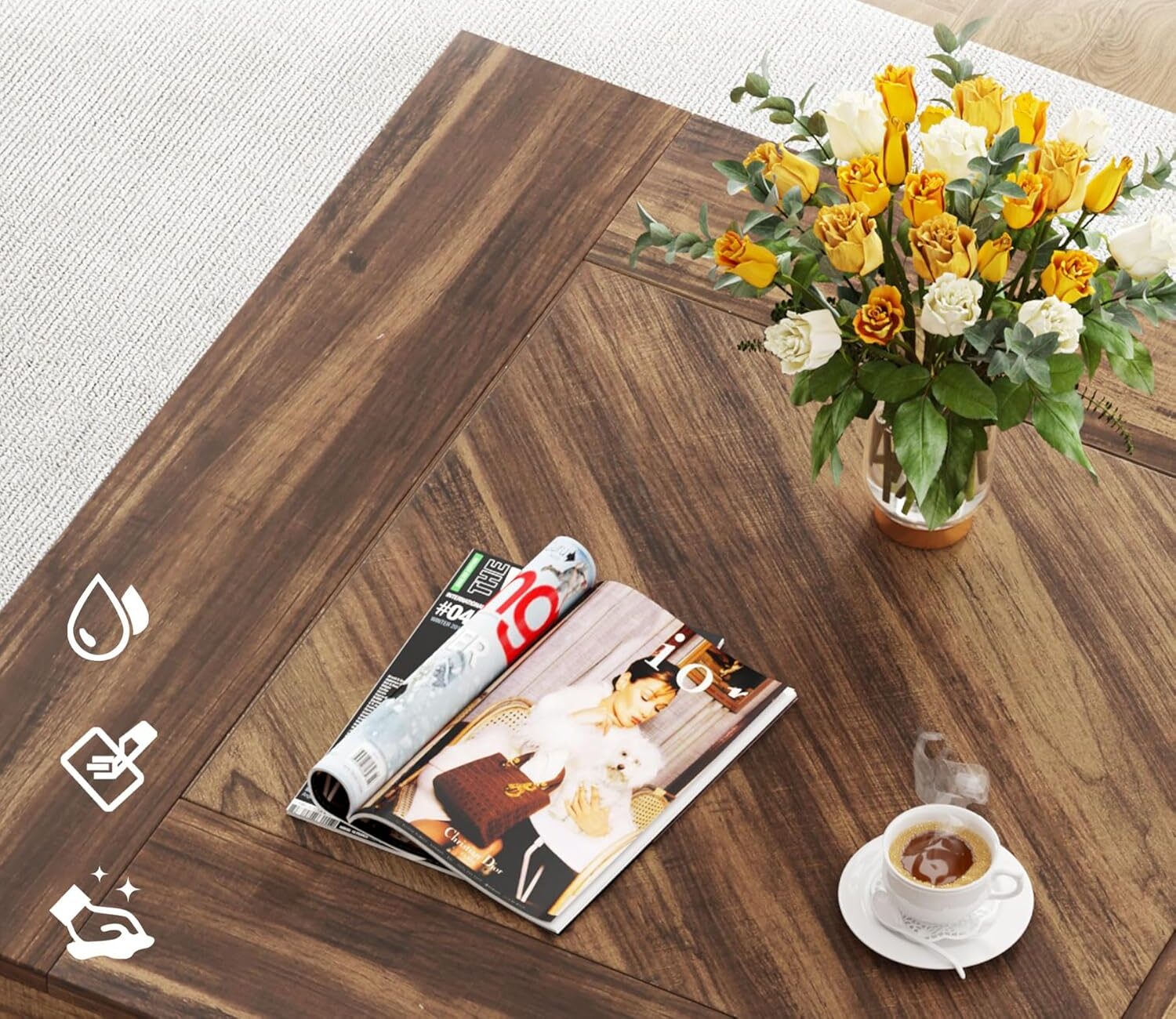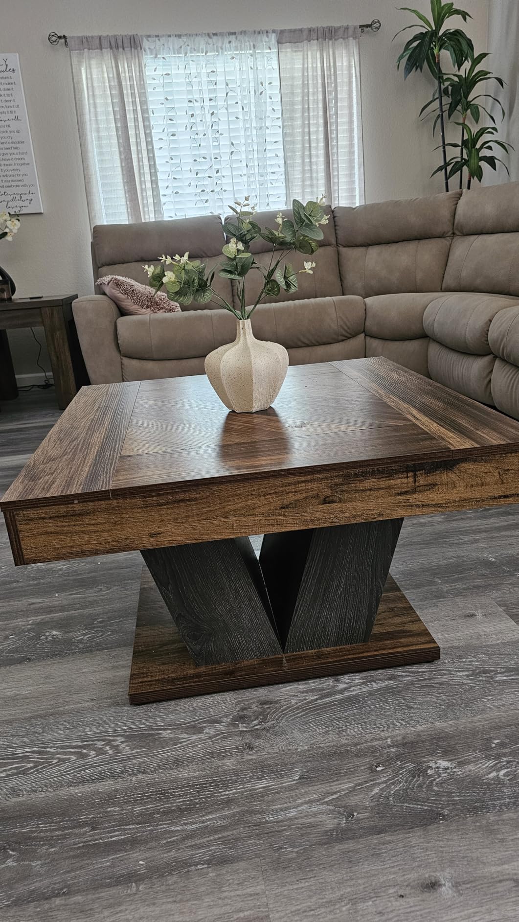 Стабилна и издржлива: Нашата висококвалитетна маса за дневна соба е направена од дебел MDF врв и дрвена рамка; оваа рустикална маса има силна носивост до 100 kg. Прилагодливите нозе ја штитат подната површина од гребаници.