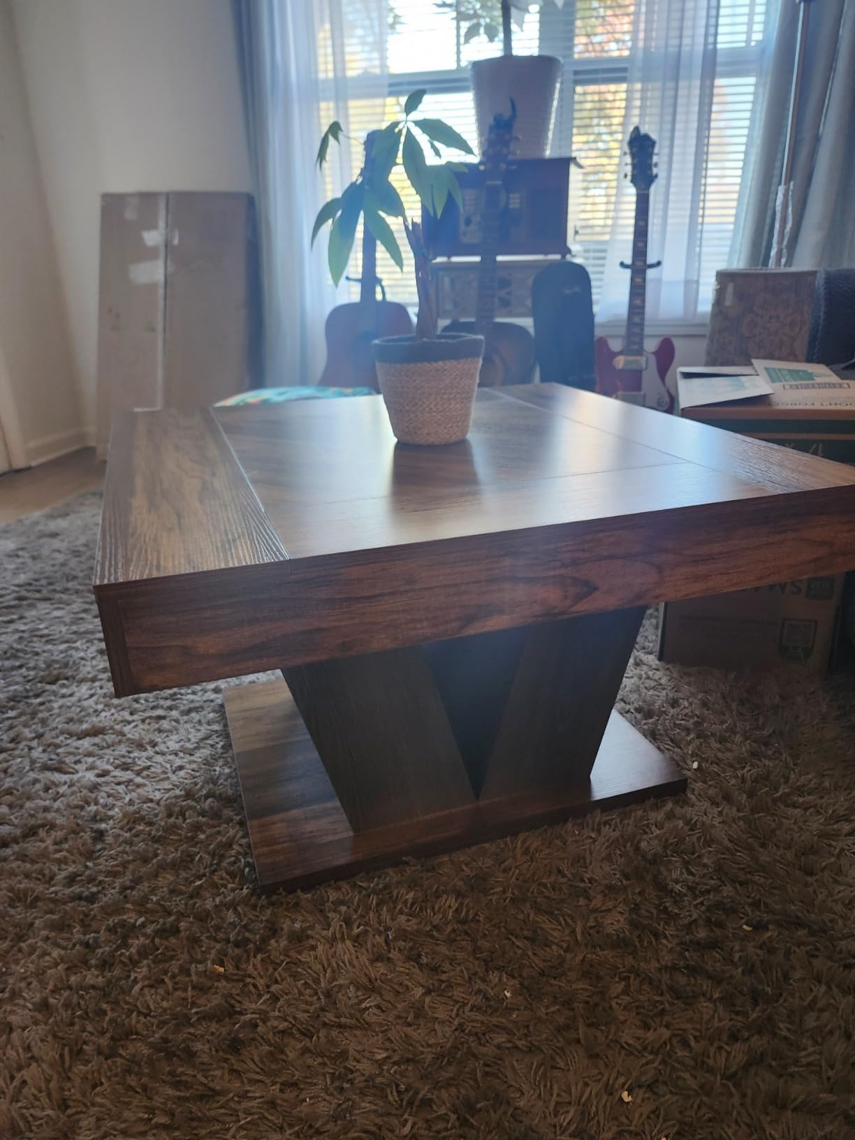 Со месеци пазарував барајќи ја вистинската масичка за кафе… и еве ја! Одлична цена, цврста, а ми се допаѓа и бојата/лакот за дрво. Немав проблем сама да ја направам.