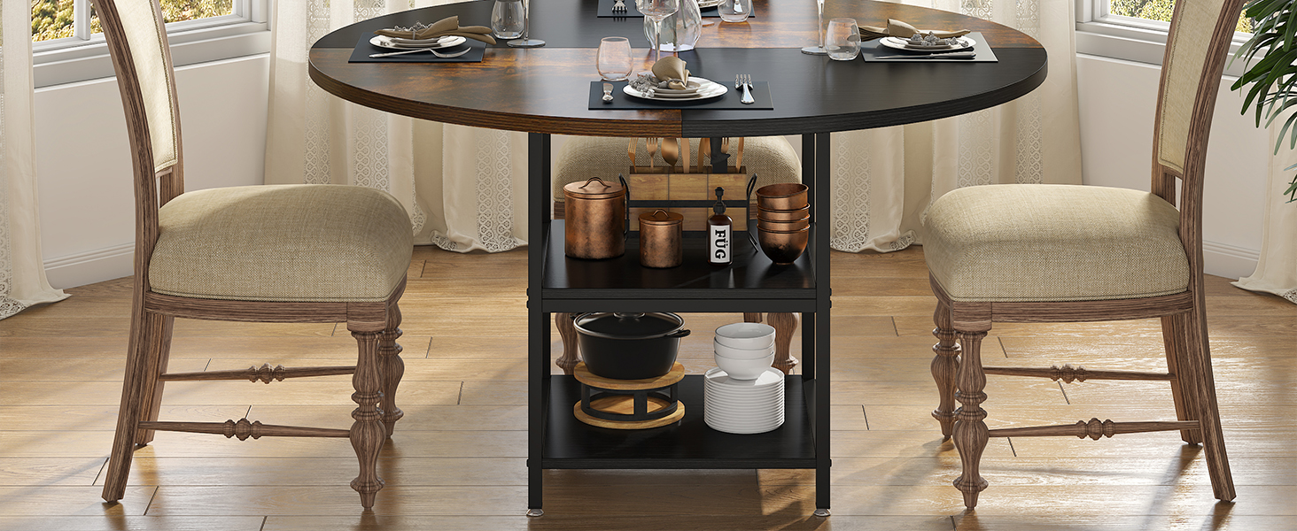 Пространиот плот од 47 инчи создава удобен простор за јадење, додека висококвалитетните материјали гарантираат долготраен век. Лесно склоплива и идеална за кујни, трпезарии и помали станови, оваа маса е вистински избор за секој што бара убавина и функционалност во еден производ.