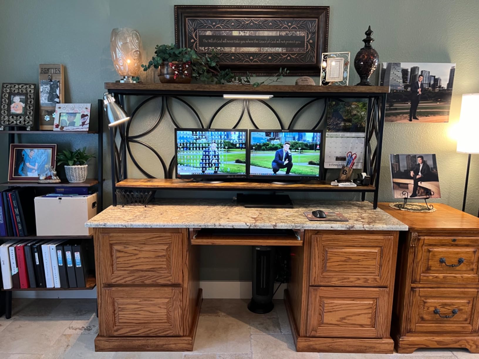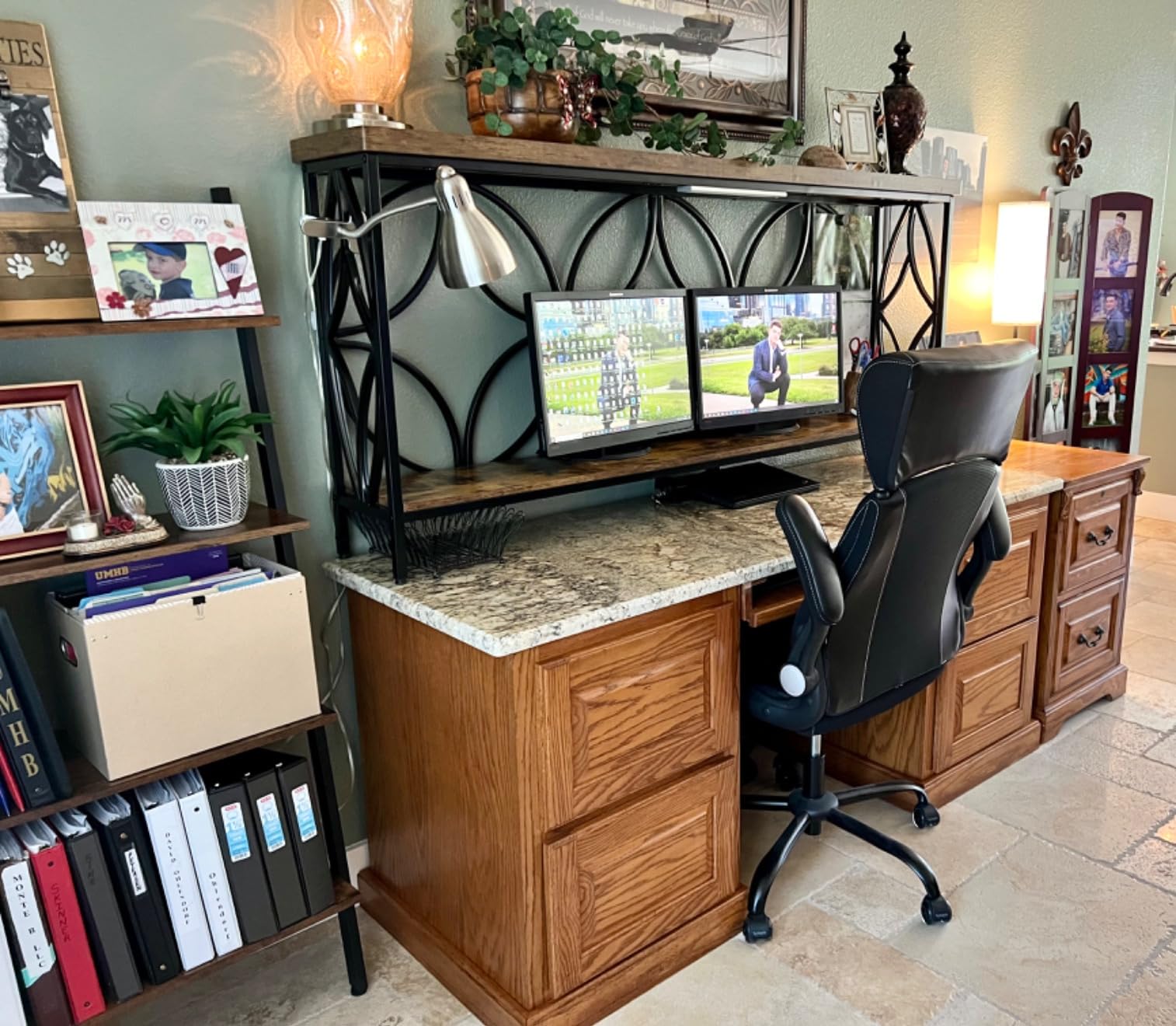 – комбинација од винтиџ дрвен финиш и геометриска црна метална рамка која изгледа модерно и елегантно во секој дом.