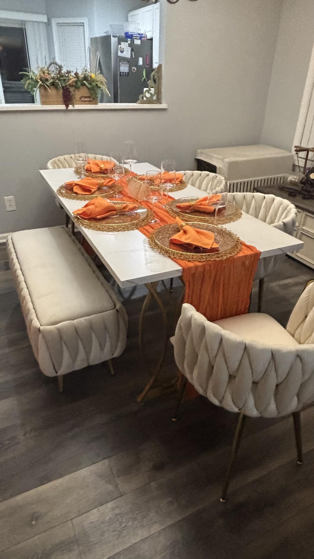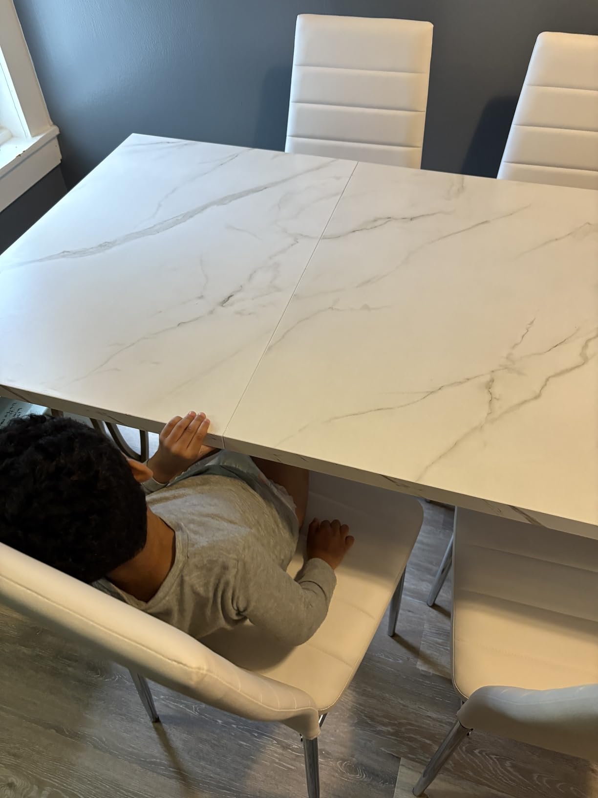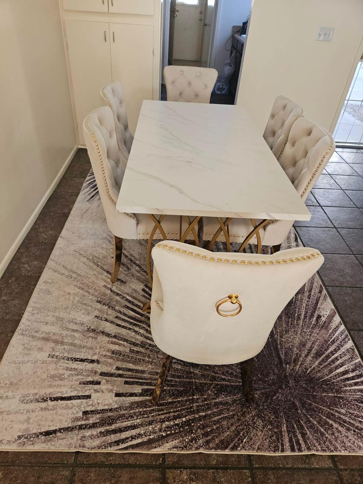 Оваа модерна бело-златна маса совршено се вклопува во секоја канцеларија, домашна работна соба или како конференциска маса. Може да се користи и како маса за пишување, маса за состаноци или дури и како елегантна трпезариска маса.