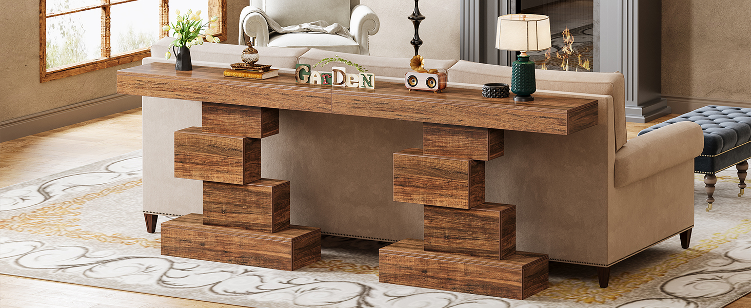 Може да биде конзолна маса во ходник, маса зад тросед, декоративен акцент во дневна или практичен елемент за складирање и изложување. -