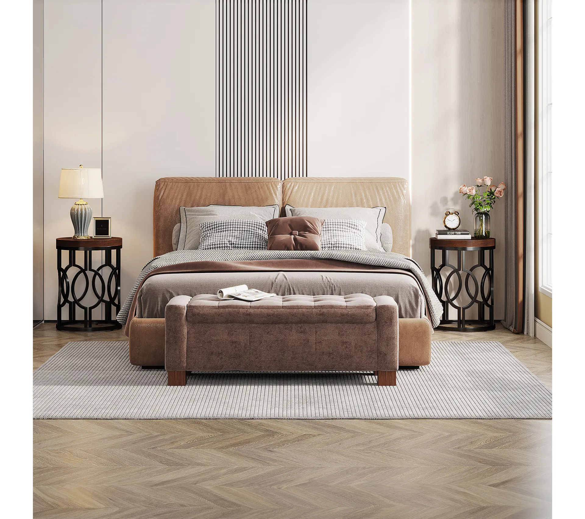 Совети за одржување: Чистете ја површината исклучиво со сува крпа за да го зачувате квалитетот на дрвениот фурнир и металните делови.