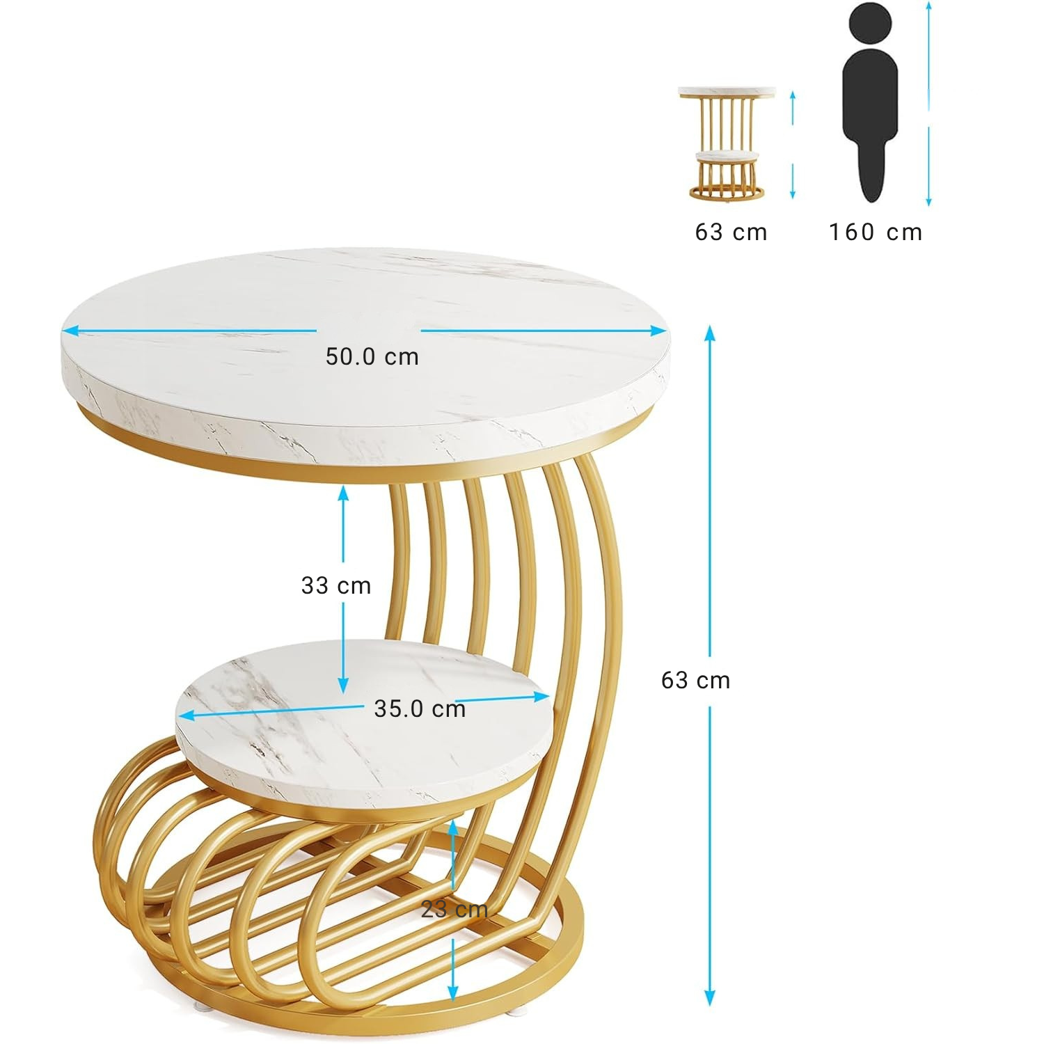 Со пречник од 50 см и висина од 63 см, оваа мала и лесна кругла масичка е идеална за секоја просторија – како стилска странична маса во дневната, ходникот или како ноќна масичка во спалната соба.