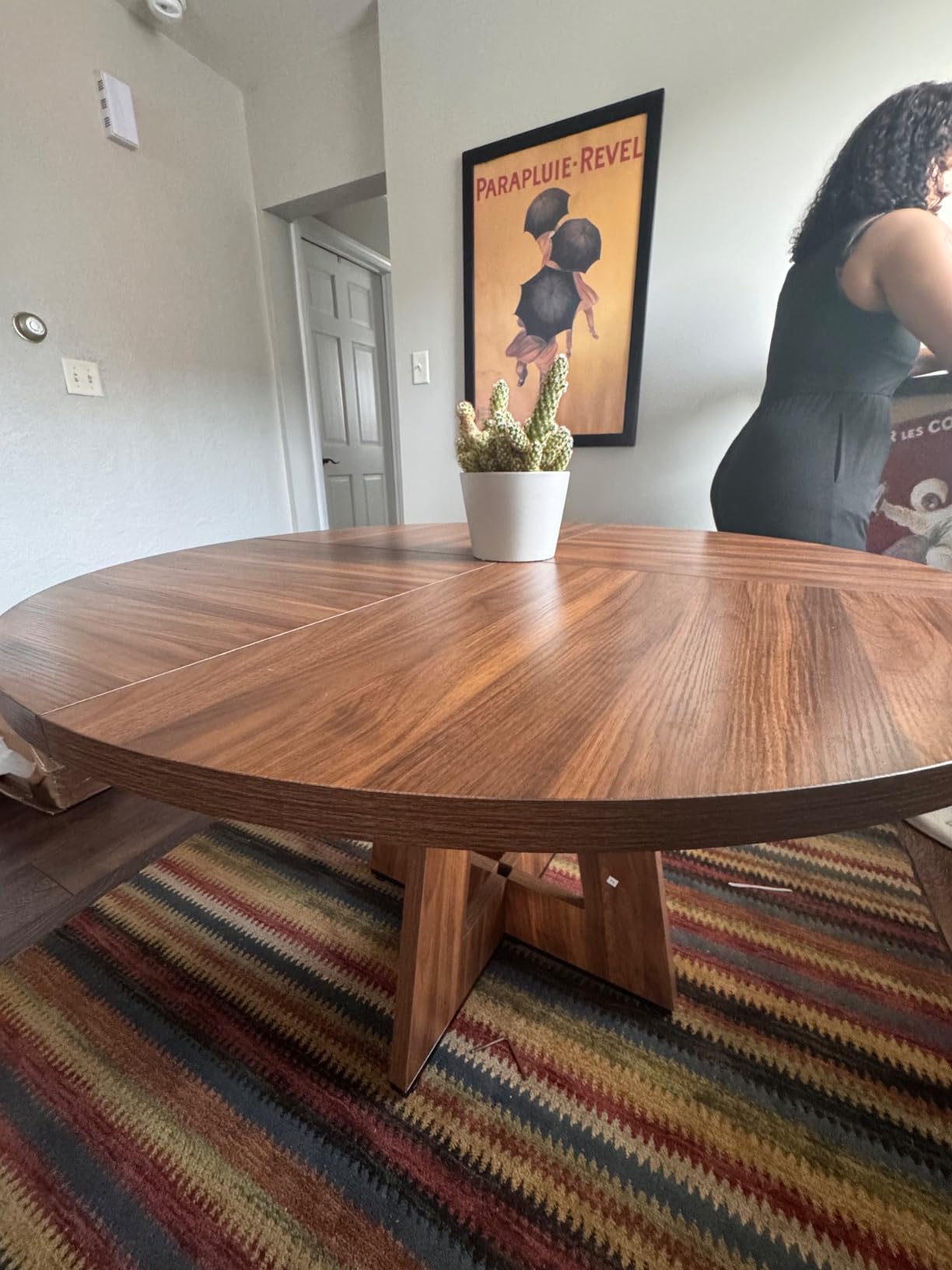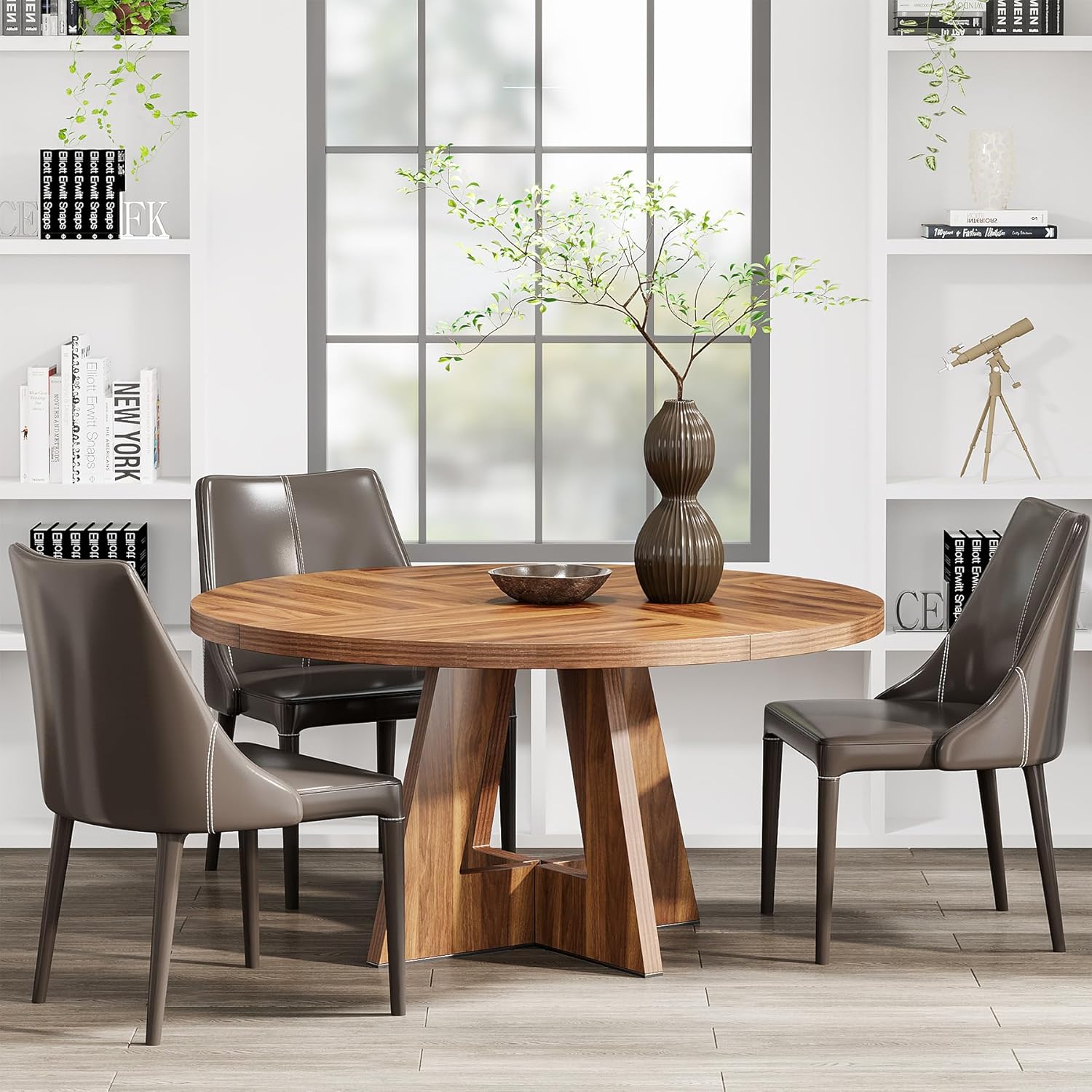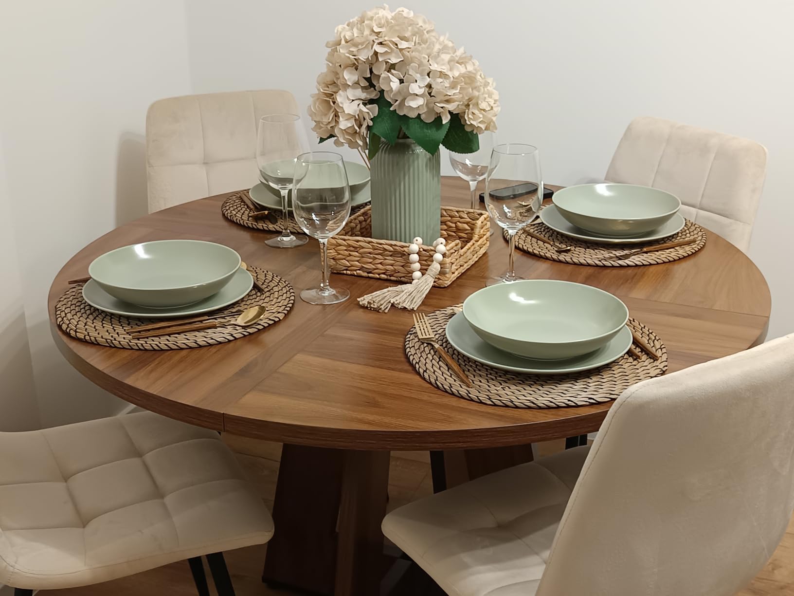 Благодарение на својот елегантен и едноставен дизајн, оваа округла трпезариска маса лесно се вклопува во најразлични ентериери – модерни, традиционални, рустични или комбинирани. Таа придонесува за хармоничен и уреден изглед на просторот.