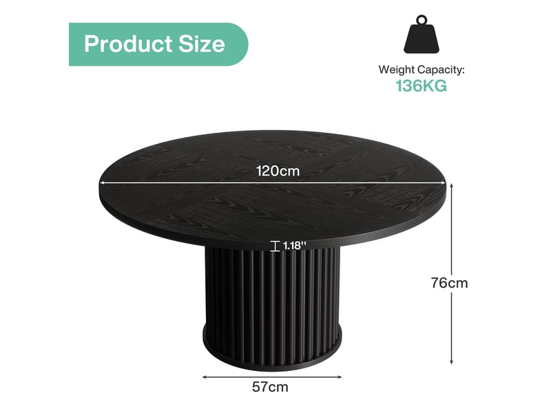 Идеални димензии за дружење: Со дијаметар од 120 cm, оваа тркалезна маса комотно сместува од 4 до 6 лица, што ја прави совршена за семејни вечери или викенд дружења со пријателите. Тркалезната форма поттикнува подобра комуникација и проток во просторијата.