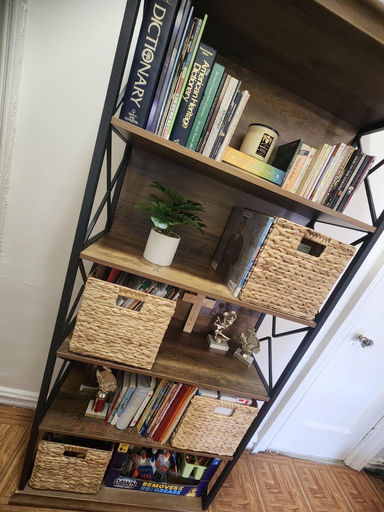 Со 5 нивоа, оваа висока полица нуди многу простор за вашите омилени книги и колекции, додека воедно ви помага да ги организирате ситниците за уреден и чист дом.