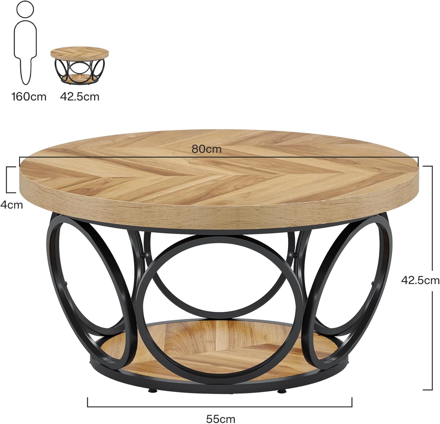 Кружната маса нуди широка работна површина од 80 cm. Идеална е како централна клуб маса во дневната соба – совршена за гости, кафе, закуски или читање.