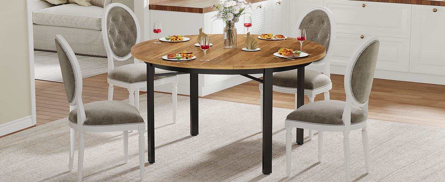 Оваа тркалезна маса од брендот Mebelux претставува совршен спој на модерен дизајн и рустичен шарм, соодветна за секоја трпезарија или кујна. Нејзиниот индустриски изглед со метални ногарки ја прави стабилна и визуелно привлечна за современите домови.
