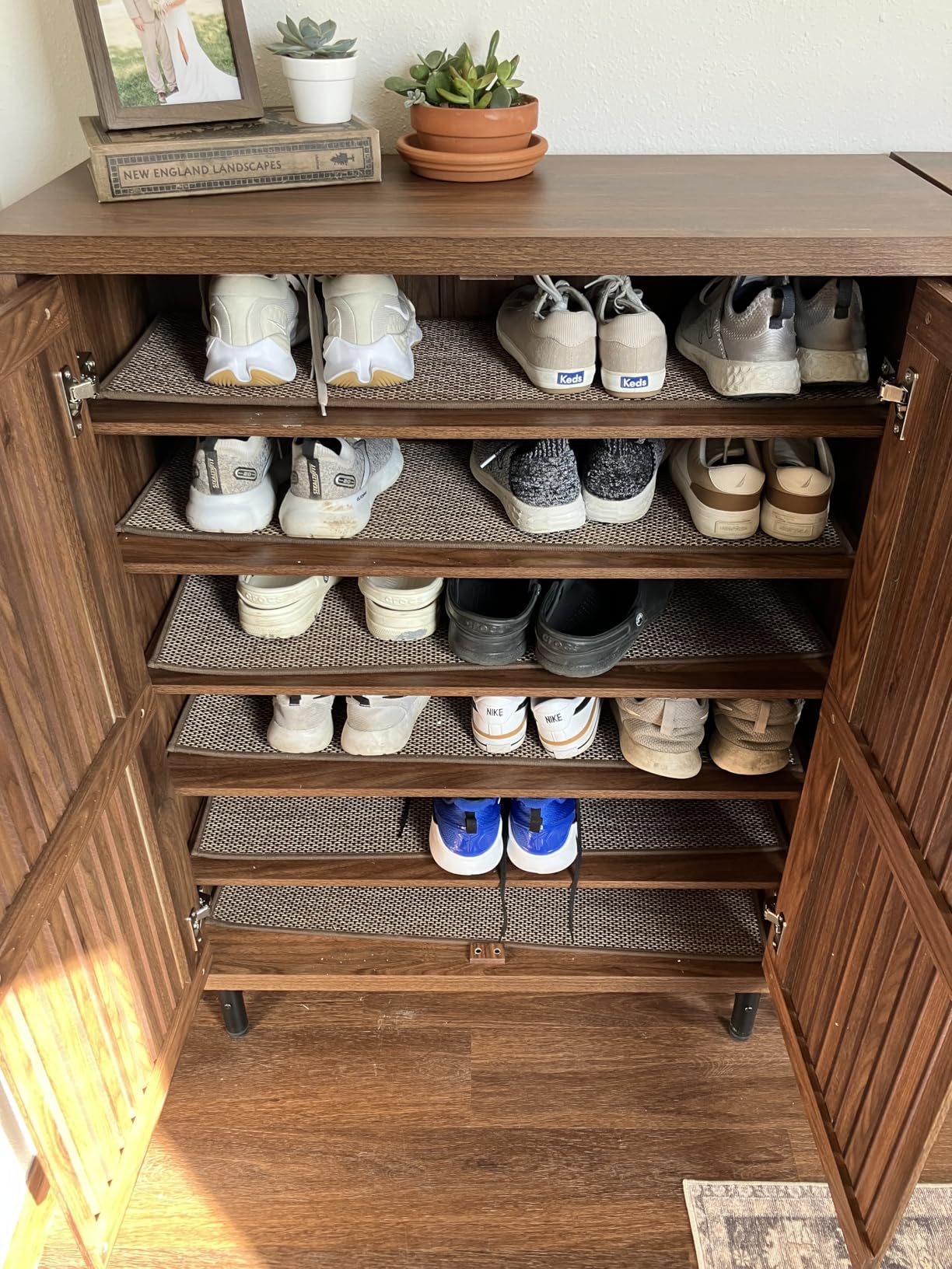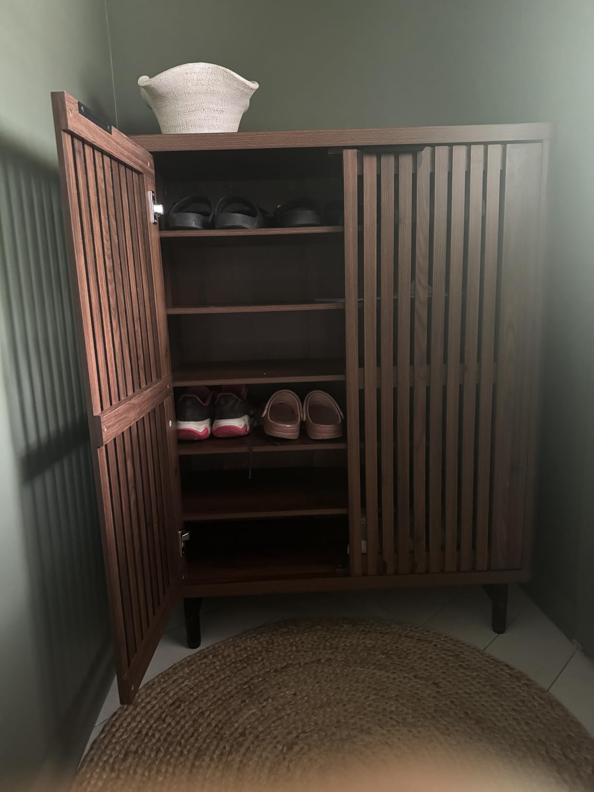Проветрени врати: Двојни лouver врати овозможуваат циркулација на воздух за подолг животен век на вашите чевли.