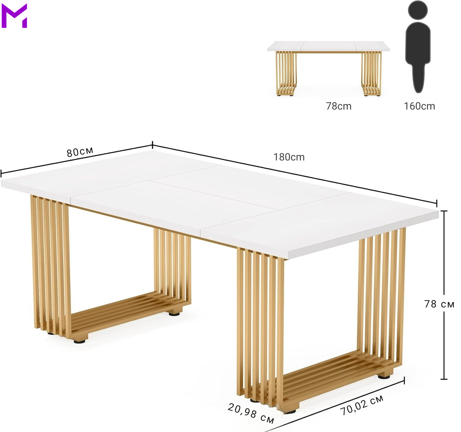 Подигнете го нивото на вашата работна околина со бирото Prestige Gold. Овој импресивен модел со должина од 180 cm нуди совршен спој на пространост и софистициран дизајн, комбинирајќи ја чистата бела боја со луксузни челични ногарки.