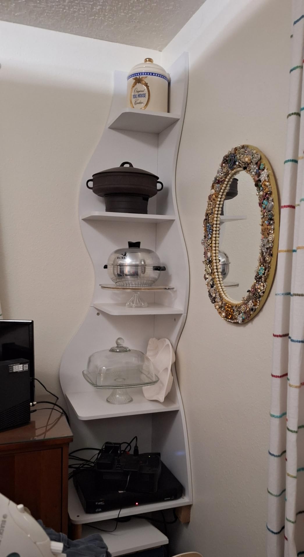 Наместо широки комоди, користете високи полици и шкафови. Така ќе добиете повеќе простор за складирање, а ѕидовите ќе изгледаат повисоки.